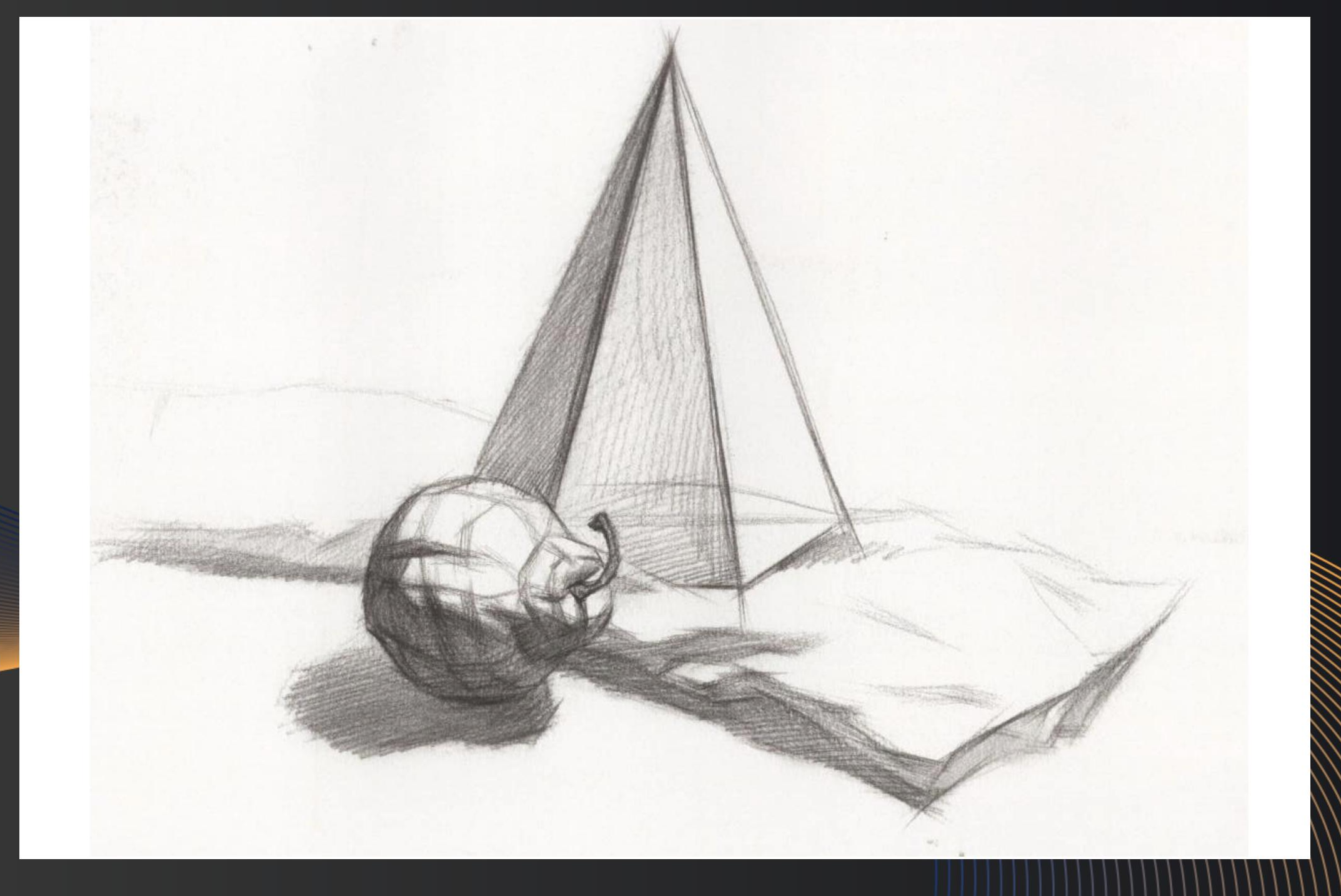 知识目标:理解梨、六棱锥和衬布的结构特征、明暗规律及素描表现的理论知识。技能目标:掌握石膏静物组合的起形、铺色和结构的技法流程。行为目标:能独立完成石膏静物组合结构素描从起形到明暗的完整创作过程。应用目标:深刻理解组合静物刻画所需的虚实空间要素,掌握组合静物的空间关系