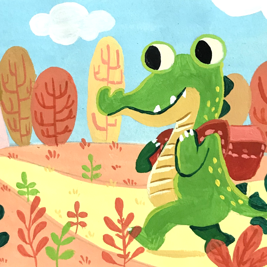 对角线构图《调皮的鳄鱼》水粉