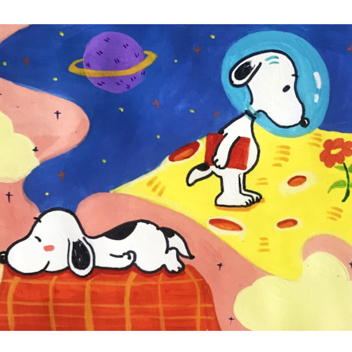 2.技能目标:通过特征观察与组合,设计创作史努比的梦