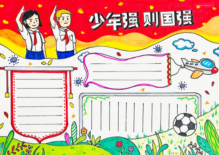 手抄报版式设计《争做新时代好少年》主题课
