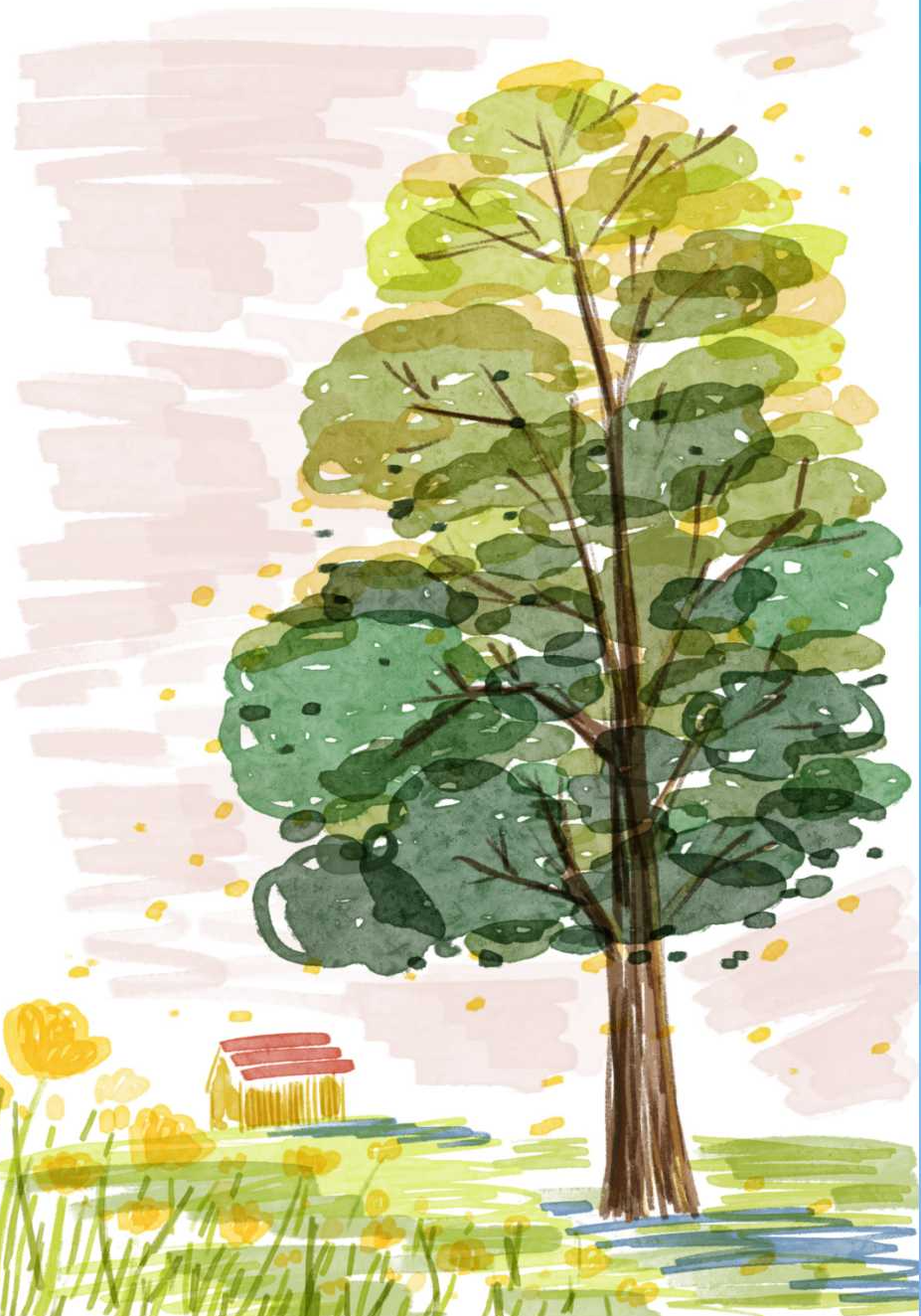 认识大树的画法,如何用水彩速写大树,如何主观配色,让速写更有趣