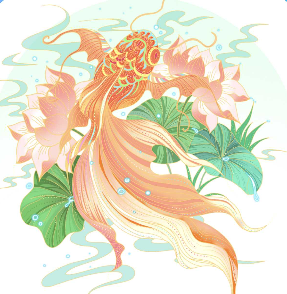认识锦鲤的形态特点,掌握装饰元素的运用