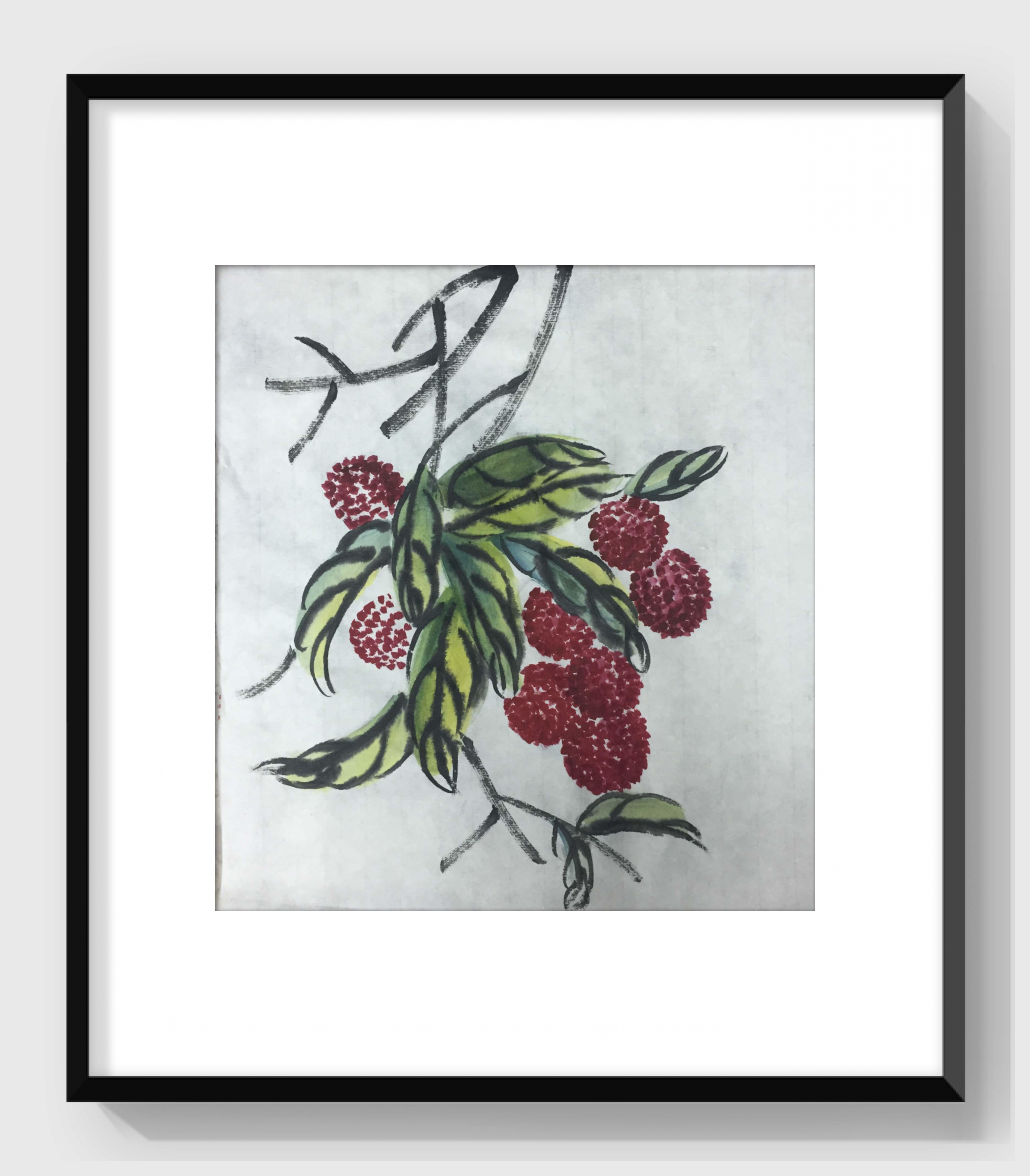 4.观察图片,观察荔枝在画纸中摆放位置及画中墨色浓淡、干湿的变化。
