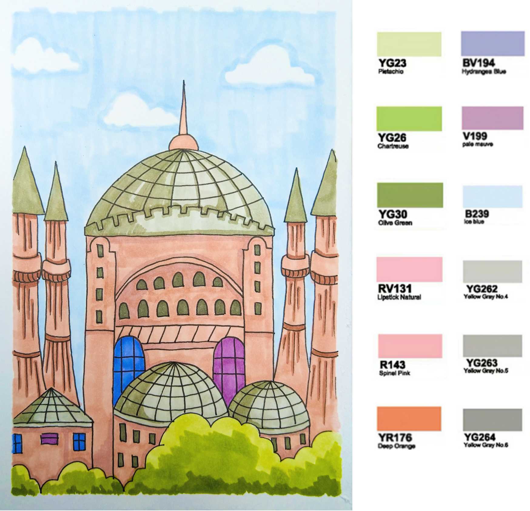 1、课程引导:世界地图引入,了解土耳其 2、主题引入:土耳其圣索菲亚大教堂 3、知识拓展:教堂穹顶的发展与教堂内部的装饰 4、专业知识:几何形体概括造型,遮挡关系,局部细节 5、绘画参考、作品完成