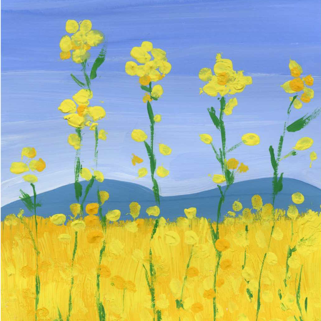 2.技能目标:运用水粉点彩法完成画面,创作油菜花作品