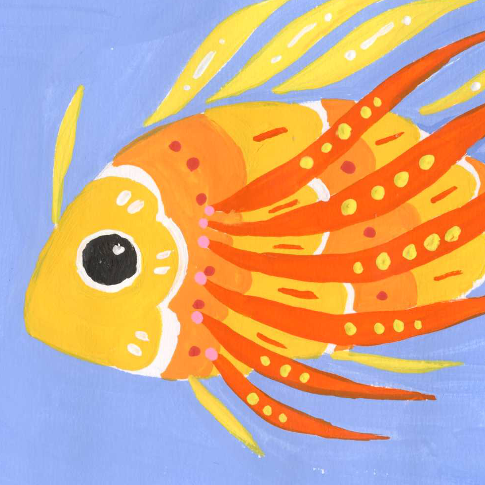 1.了解狮子鱼的结构 2.结构观察提炼 3.构图掌握 4.背景装饰安排