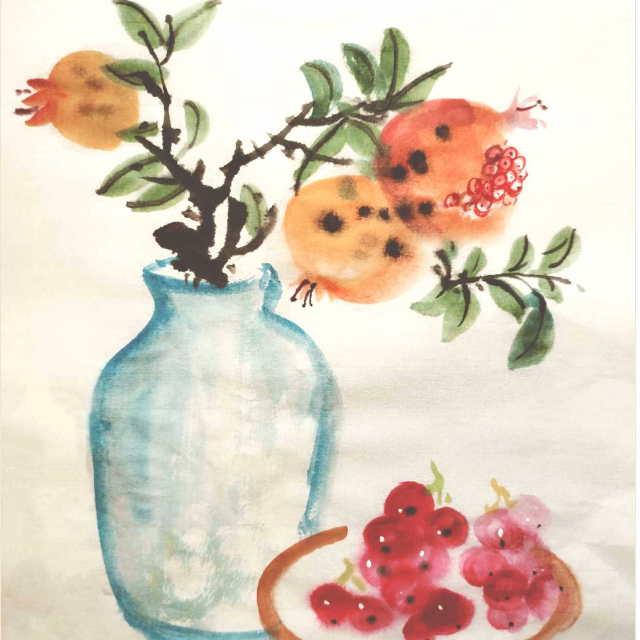 逆锋运笔《多籽的石榴》国画
