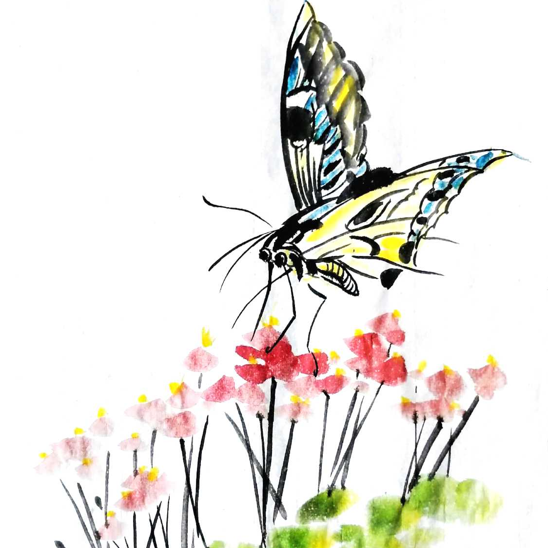 1.认识蝴蝶 2.观察蝴蝶的特征 3.欣赏《晴春蝶戏图》 4.完成作品