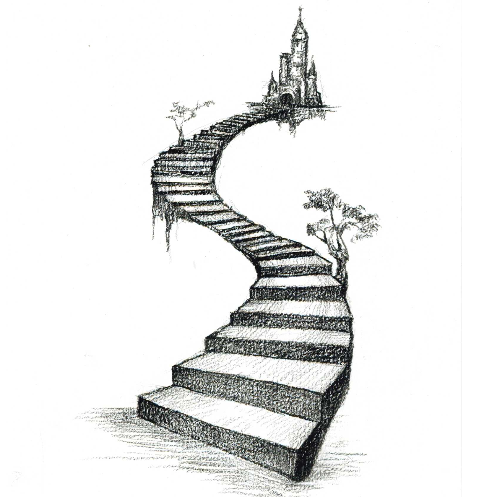 空间透视《达芬奇和透视阶梯》素描