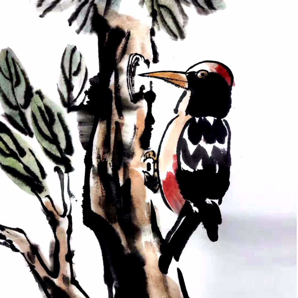 2.技能目标:浓、淡墨的技法组合及啄木鸟的肌理表现