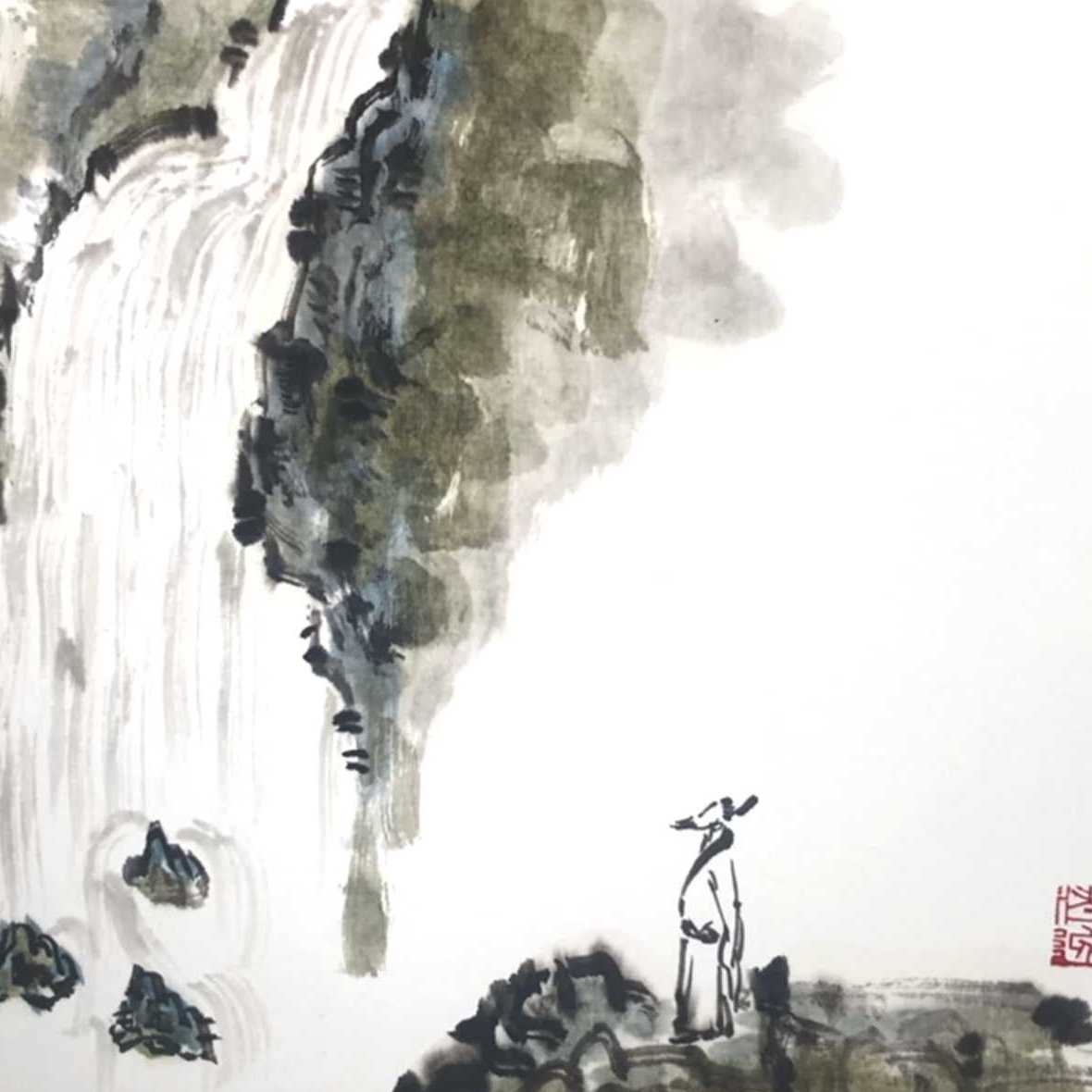 线条的流动性《望庐山瀑布》国画
