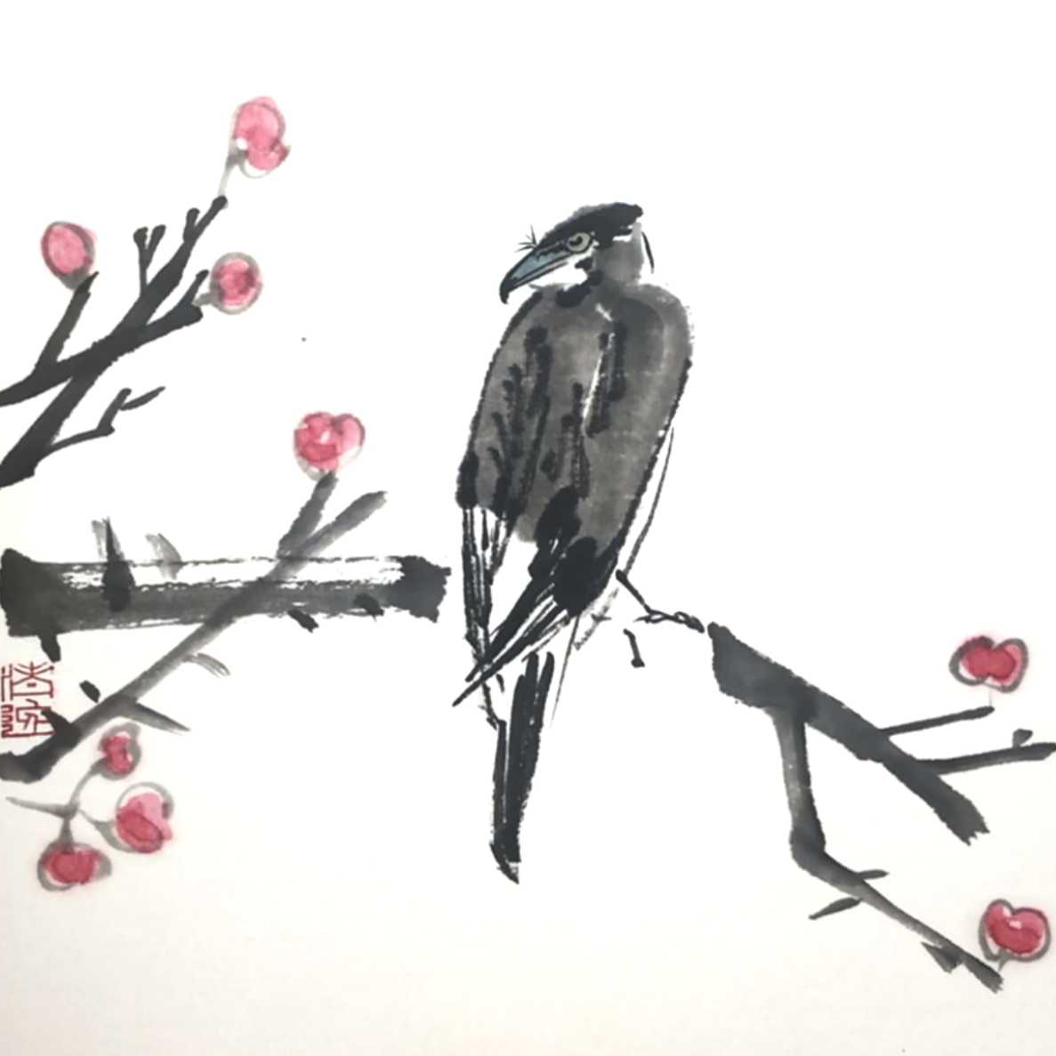 造型塑造《伯劳鸟》国画