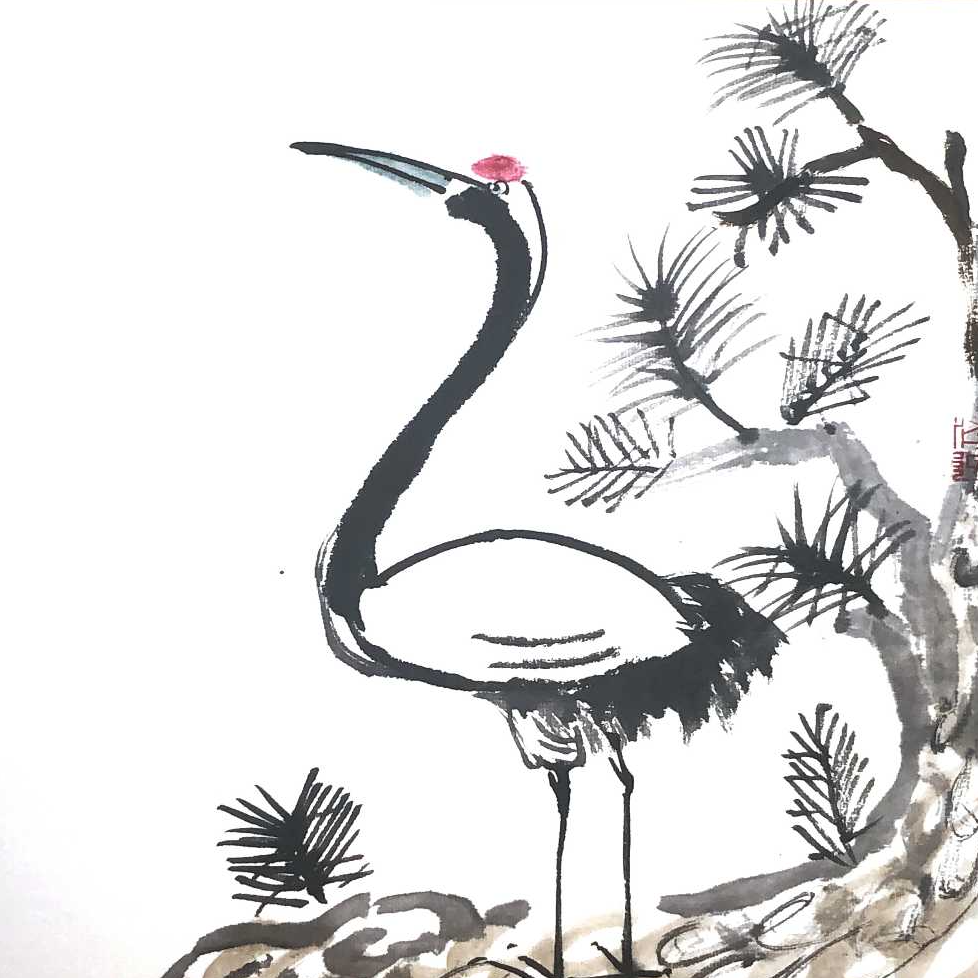 2.技能目标:熟练掌握鹤与松树的绘画方法,及笔法的运用