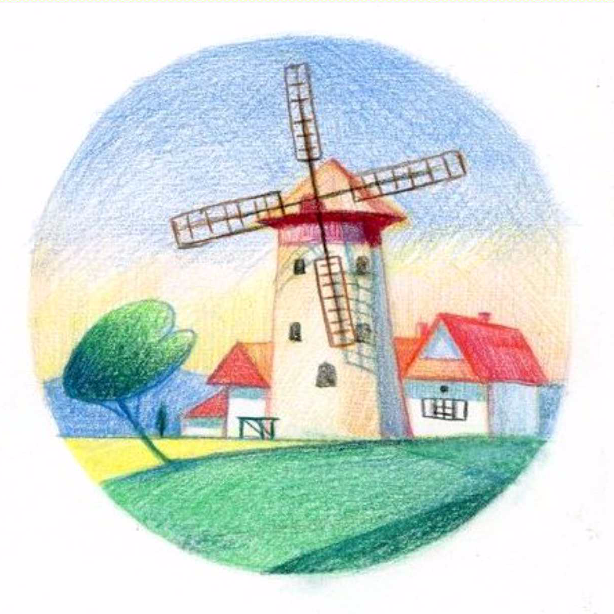 画面布局《荷兰印象——风车》彩铅