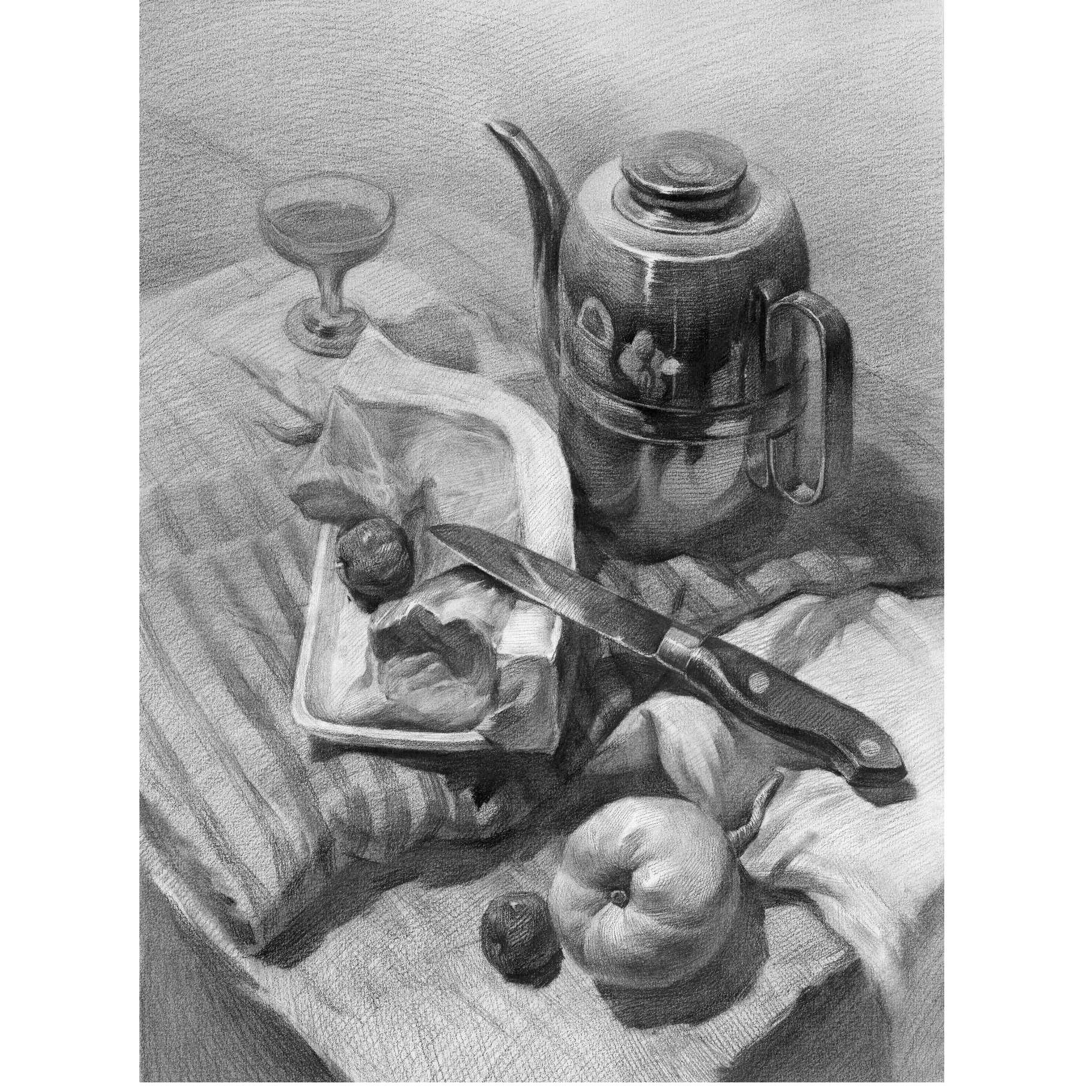 S形构图《静物构图形式》素描