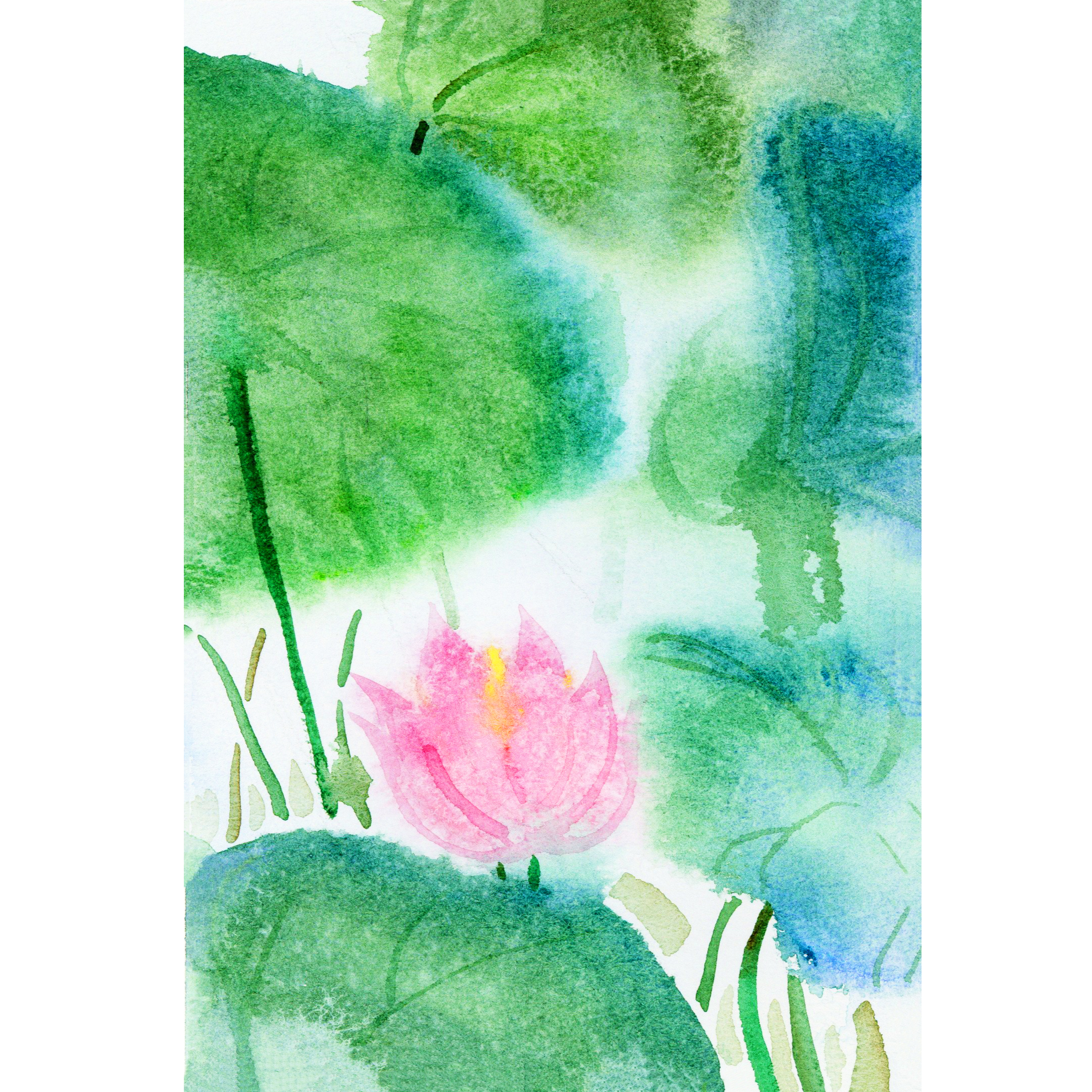 水彩喷水技法《雨后荷花》水彩