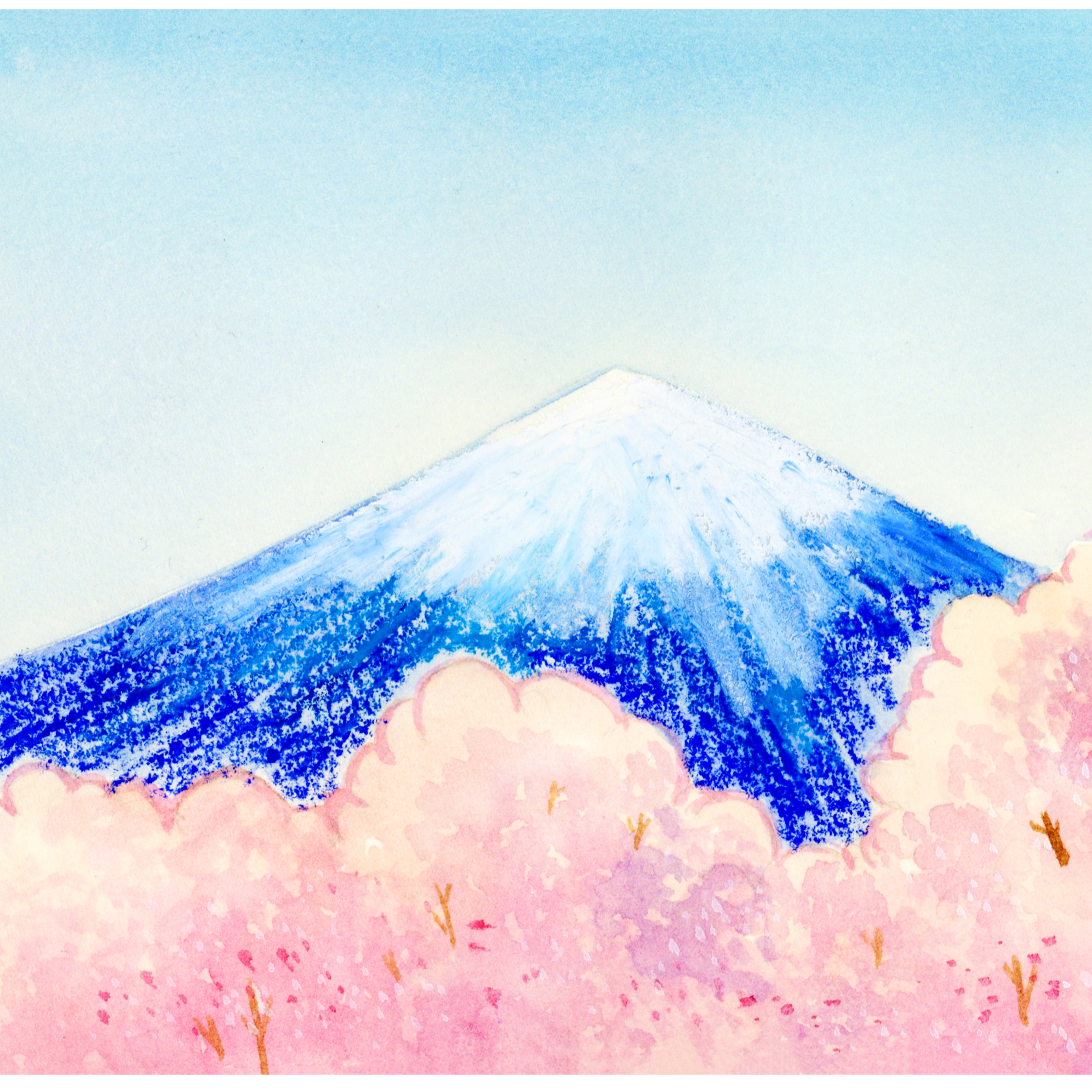 山体绘画表现《美丽的富士山》水彩