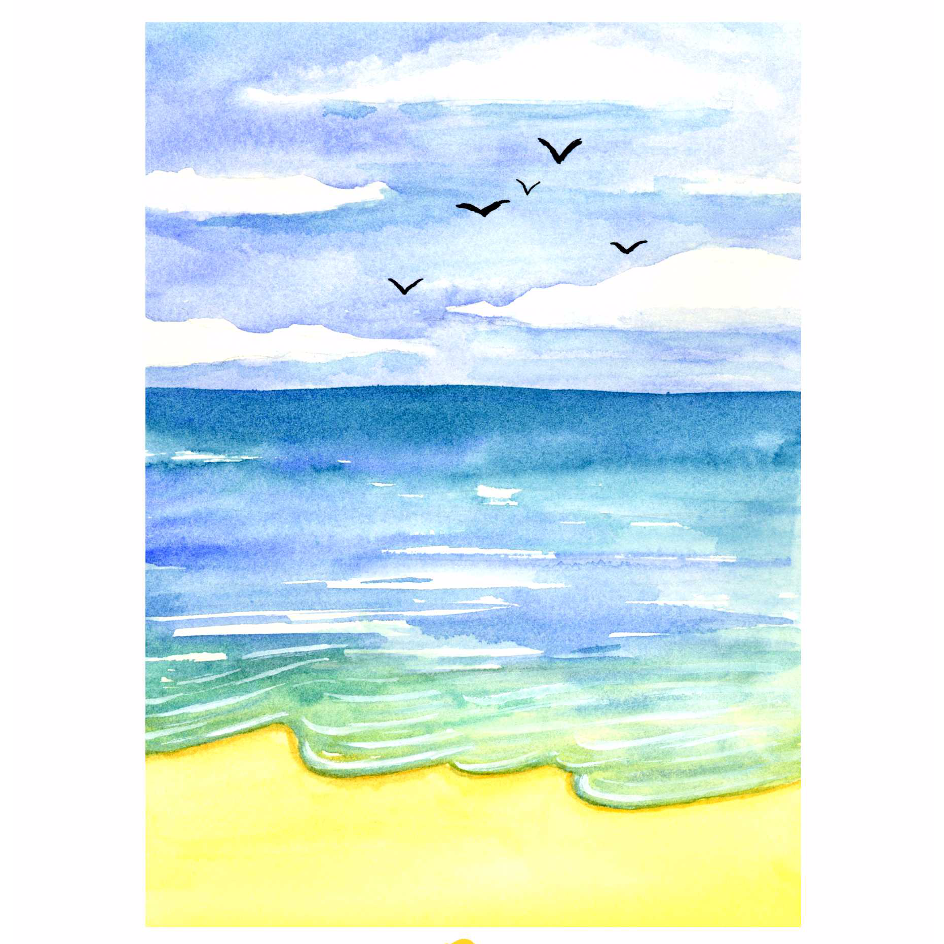 海边主题创作《海边太阳浴》水彩