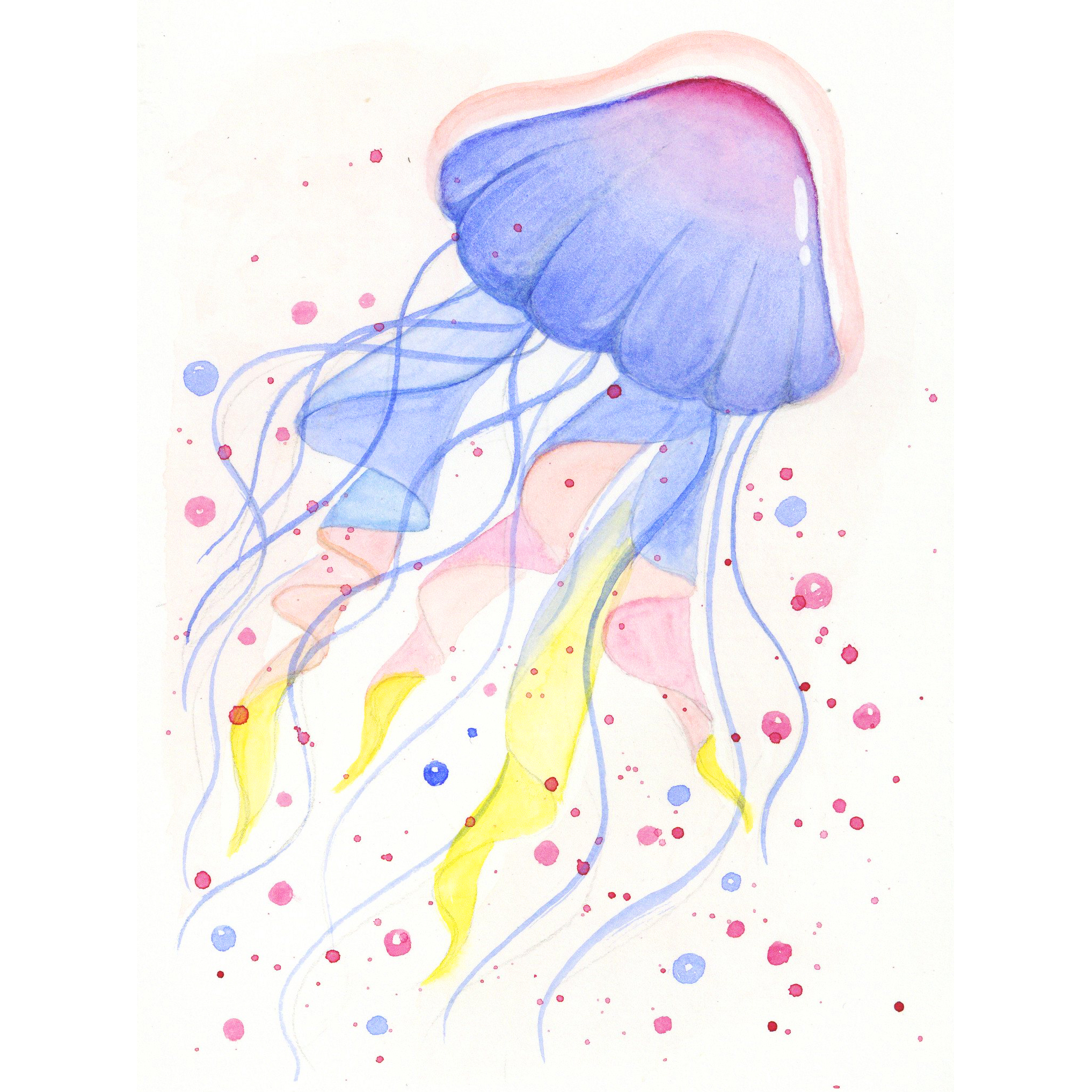 1.知识目标:了解水母的相关知识和形态特征 2.技能目标:学习运用点线面构成知识绘画作品 3.情感目标:教导学生热爱水彩,热爱生活 4.行为目标:通过课堂引导孩子对色彩的感受、培养表达能力 5.应用目标:孩子能够学以致用,将课堂所学转化为个人知识