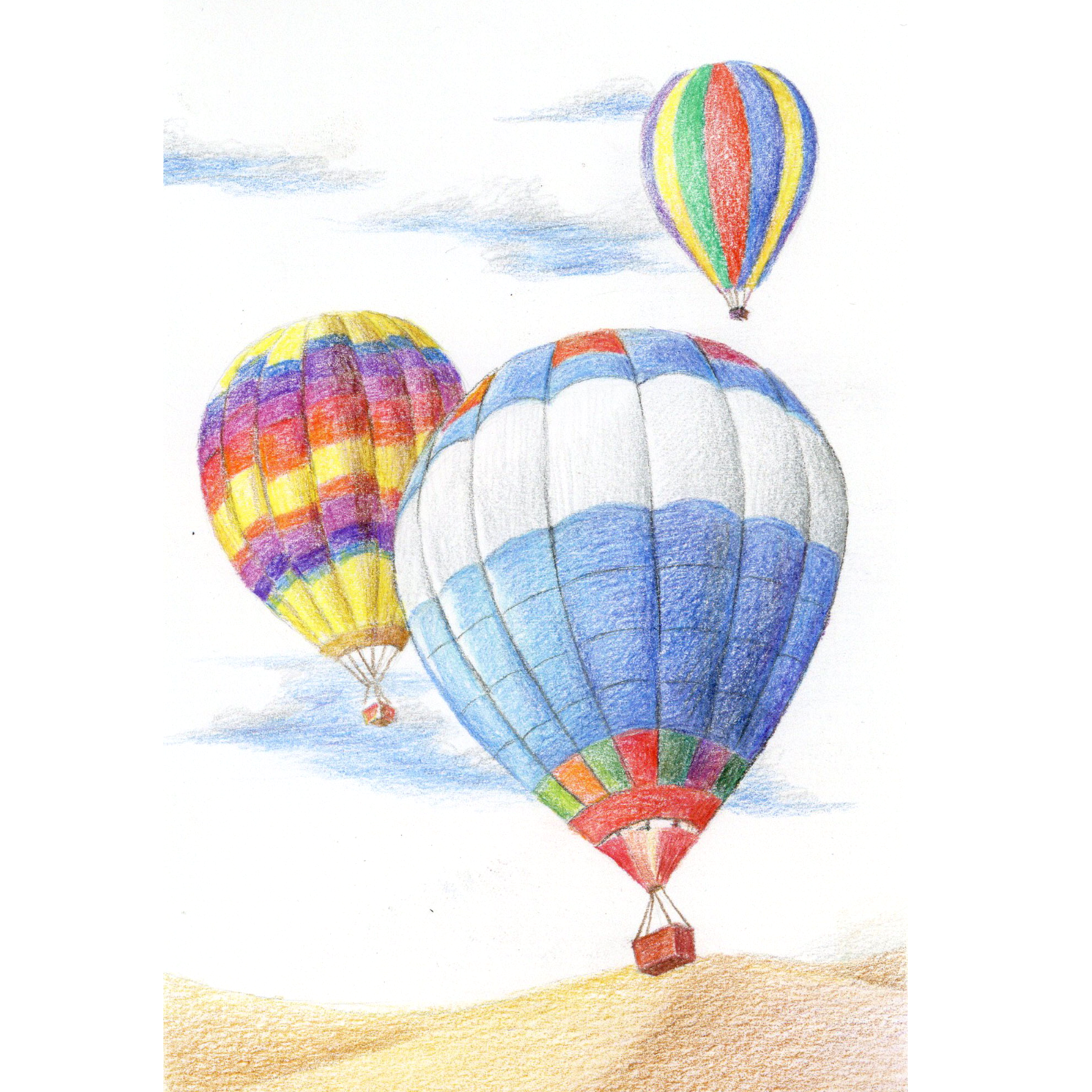 空中交通工具《浪漫的热气球》彩铅