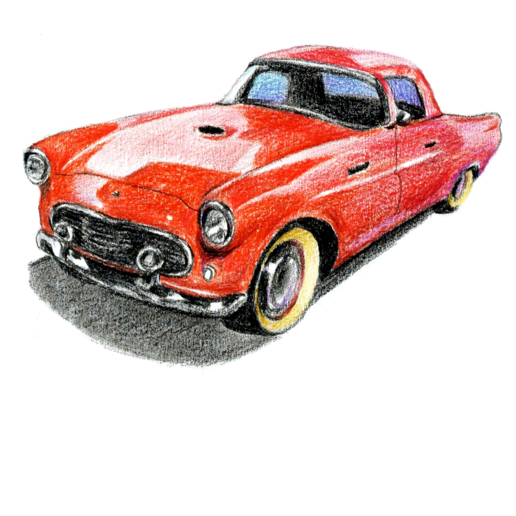 成角透视(二)《复古的老爷车》彩铅