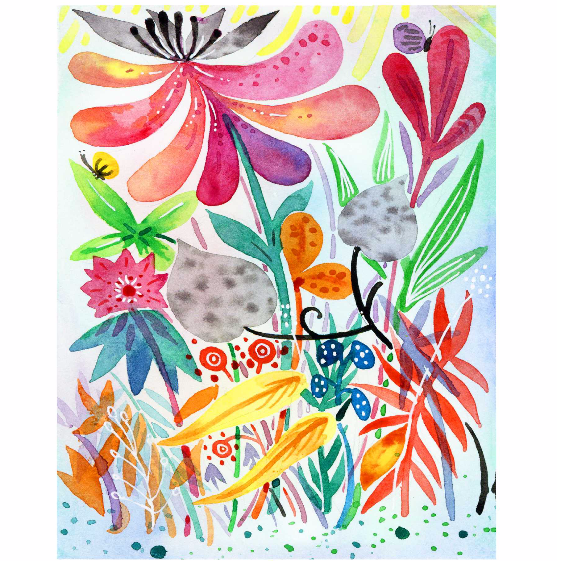 初识纹理《线描花卉的小世界》水彩