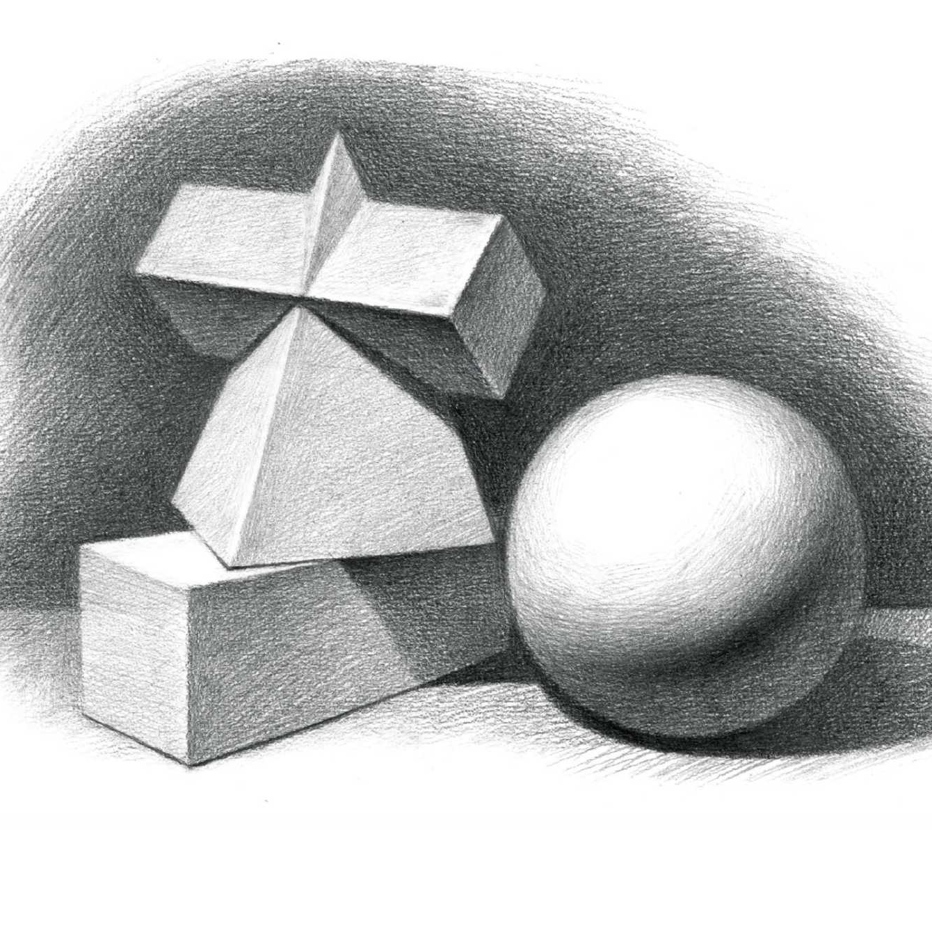 三个石膏组合《三个几何形体组合》素描