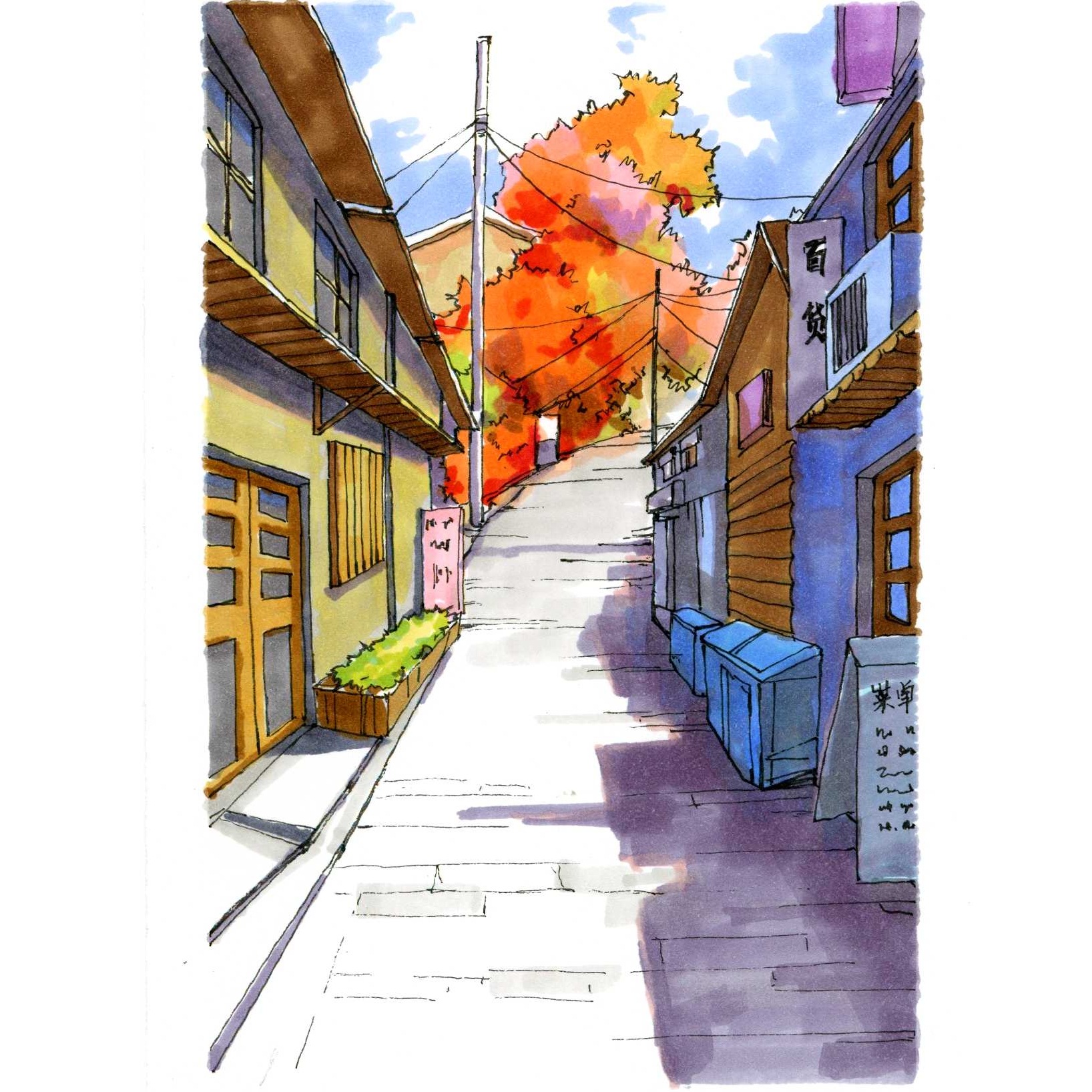 2.技能目标:学习天光的表现,结合一点透视创作场景
