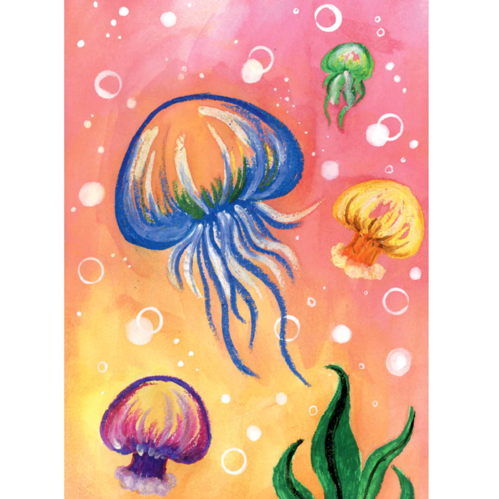 油水分离法《可爱的水母》创意绘画