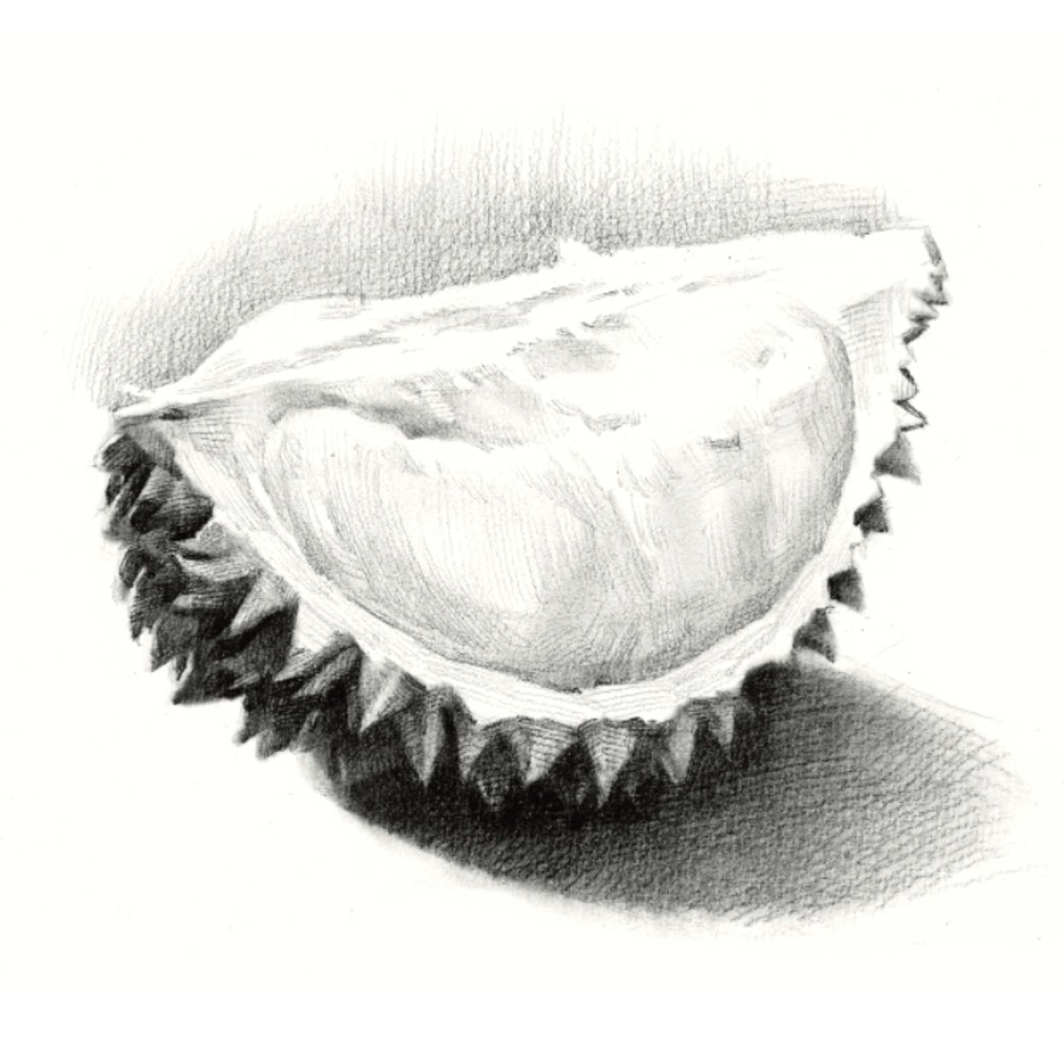 带刺水果的画法《榴莲的味道》素描
