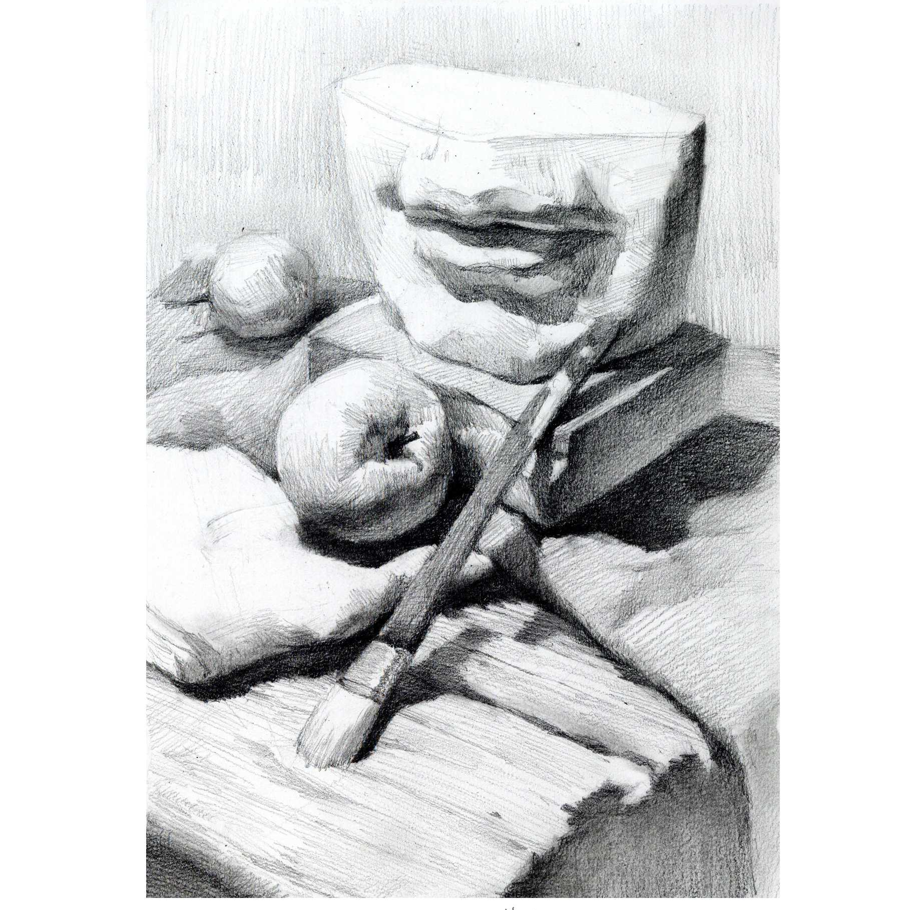 石膏嘴巴静物组合《石膏嘴巴静物组合》素描
