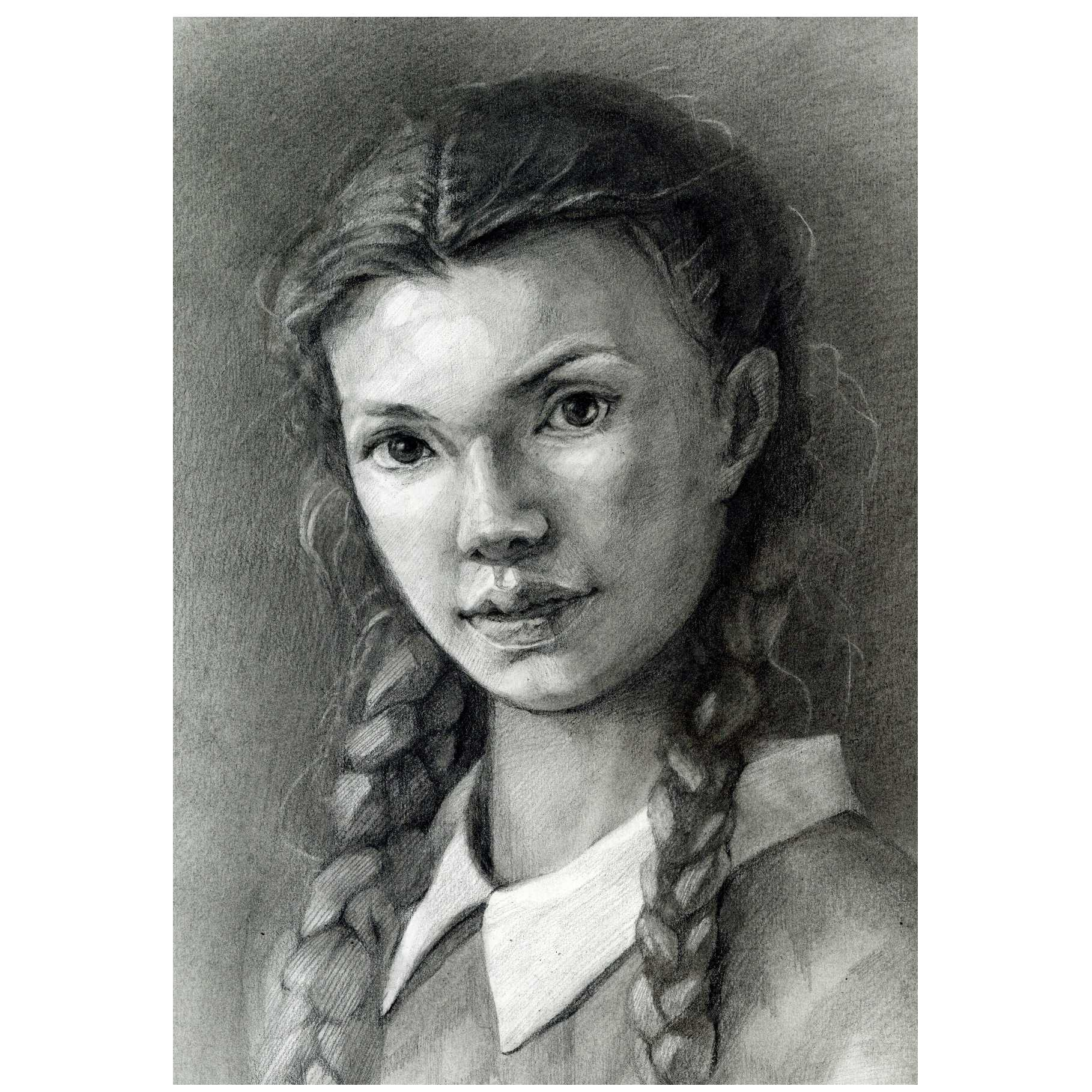 麻花辫女孩《慵懒感的麻花辫》素描