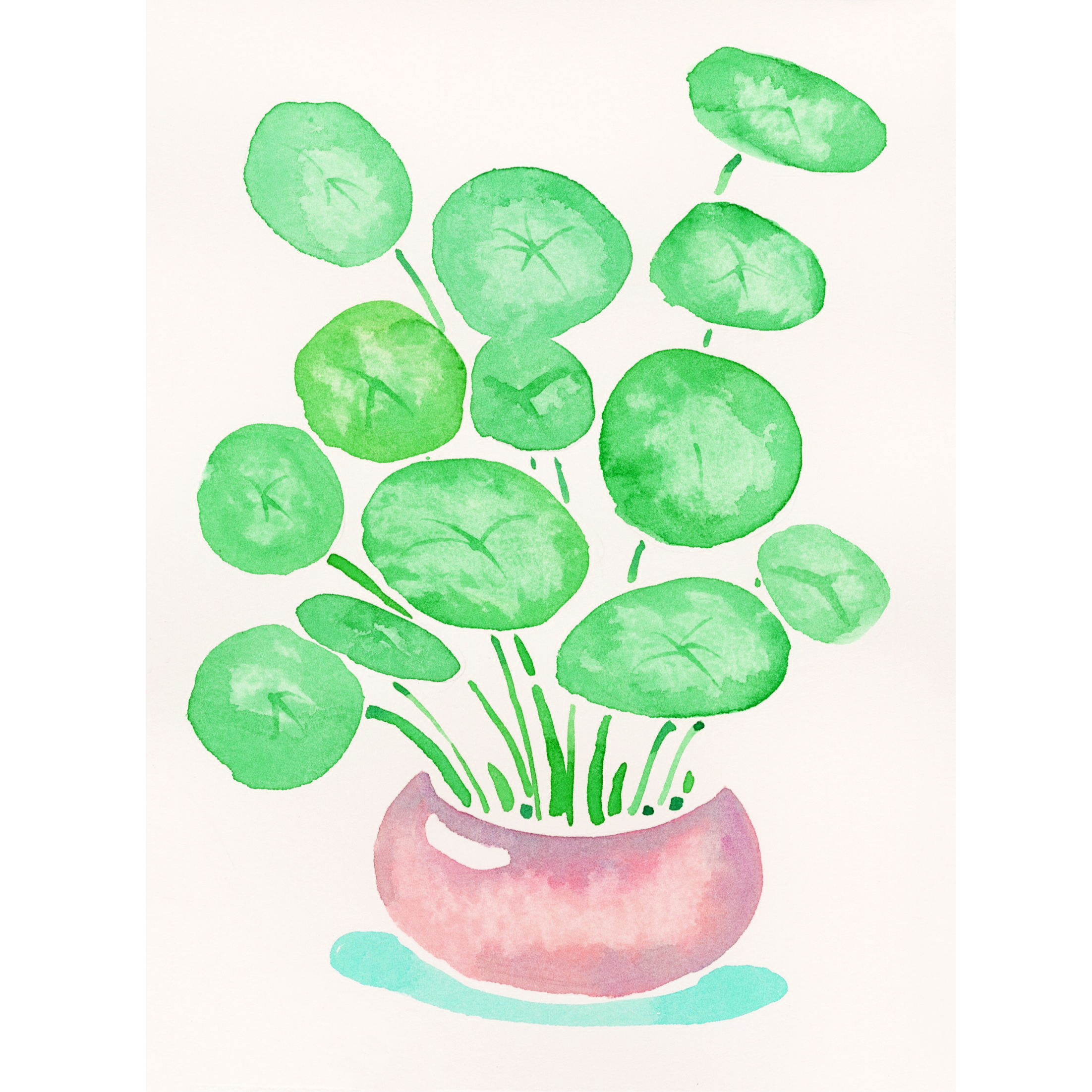 按压纸巾技法《招财的铜钱草》水彩