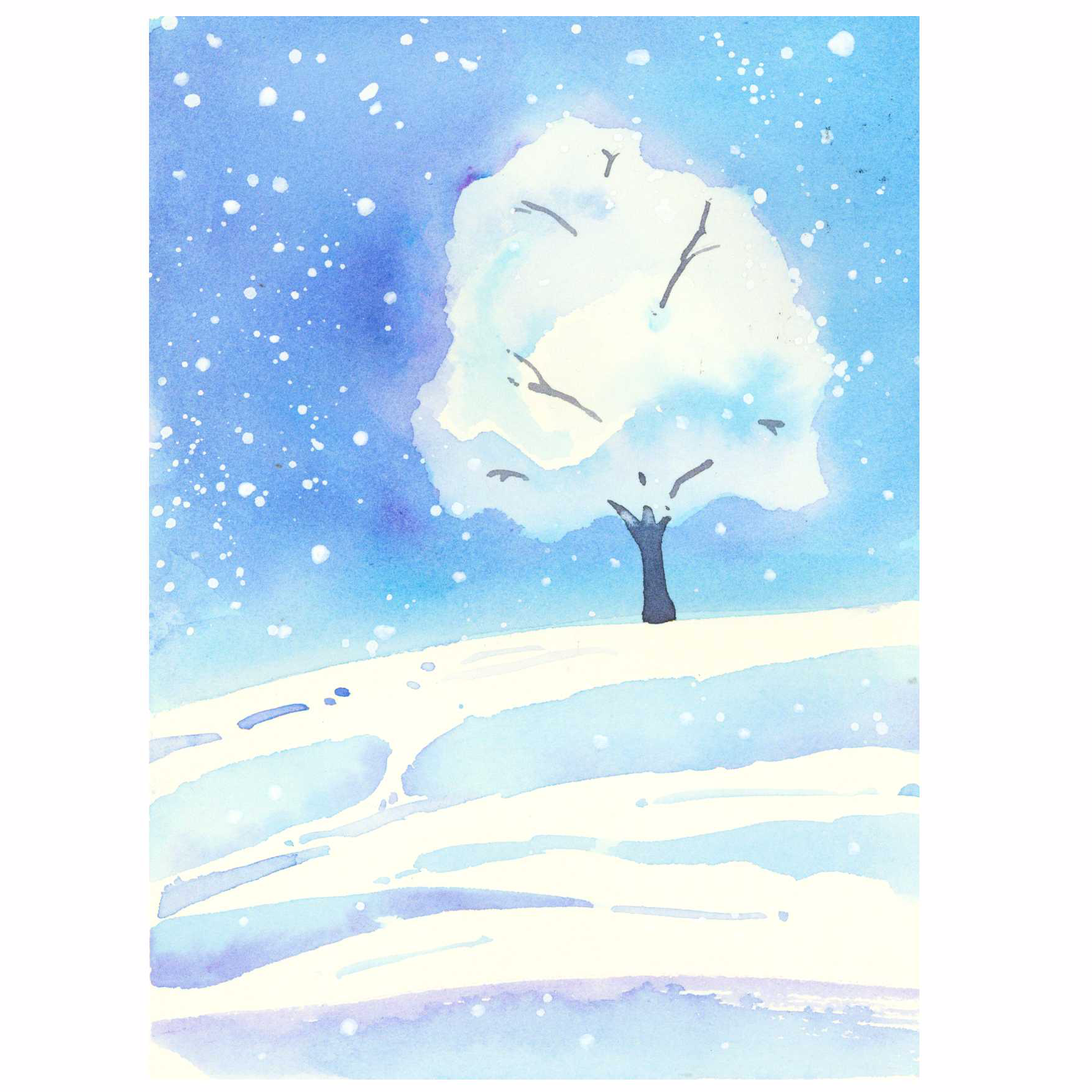 雪景绘画表现《漫天飞雪》水彩