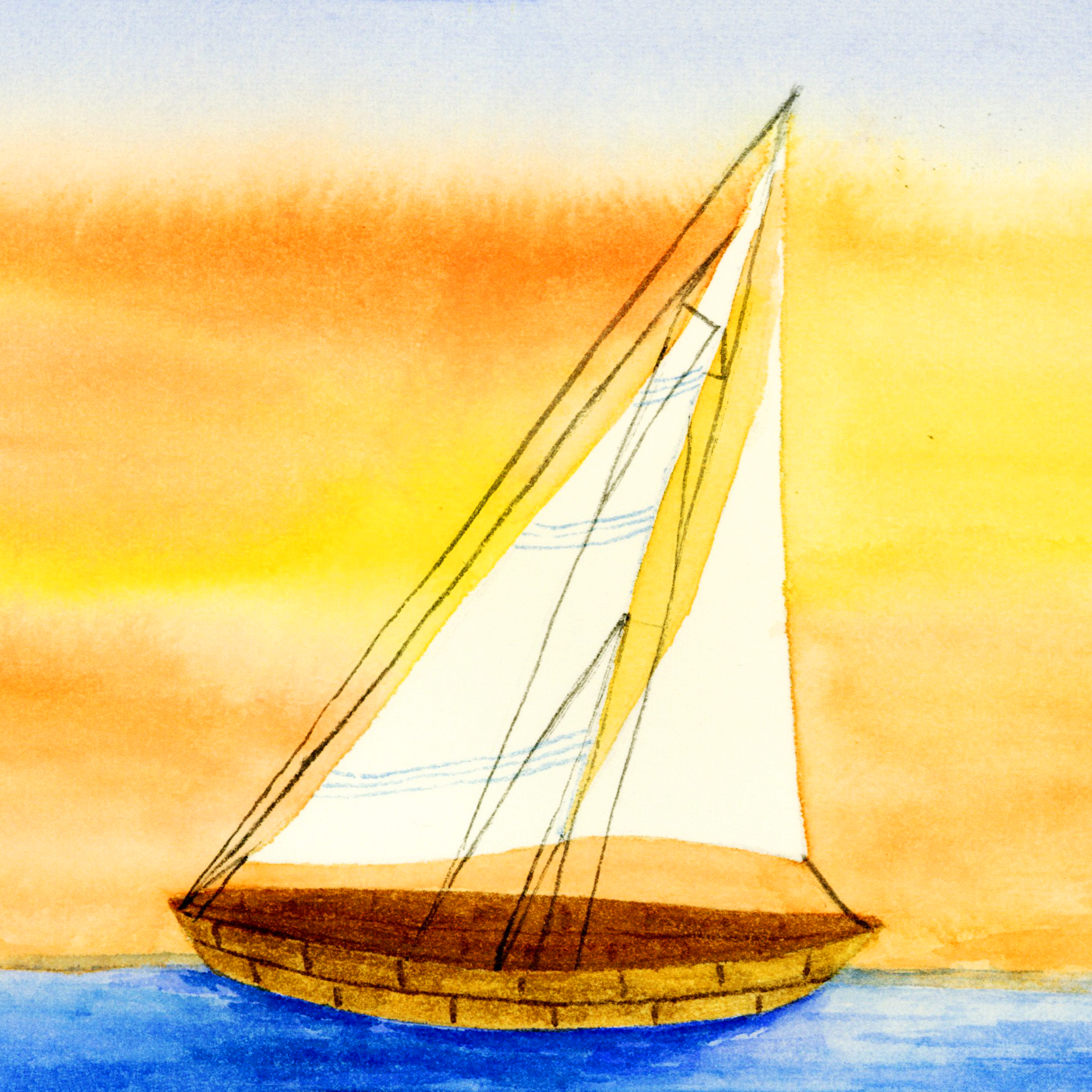 握笔技巧《海上的帆船》水彩