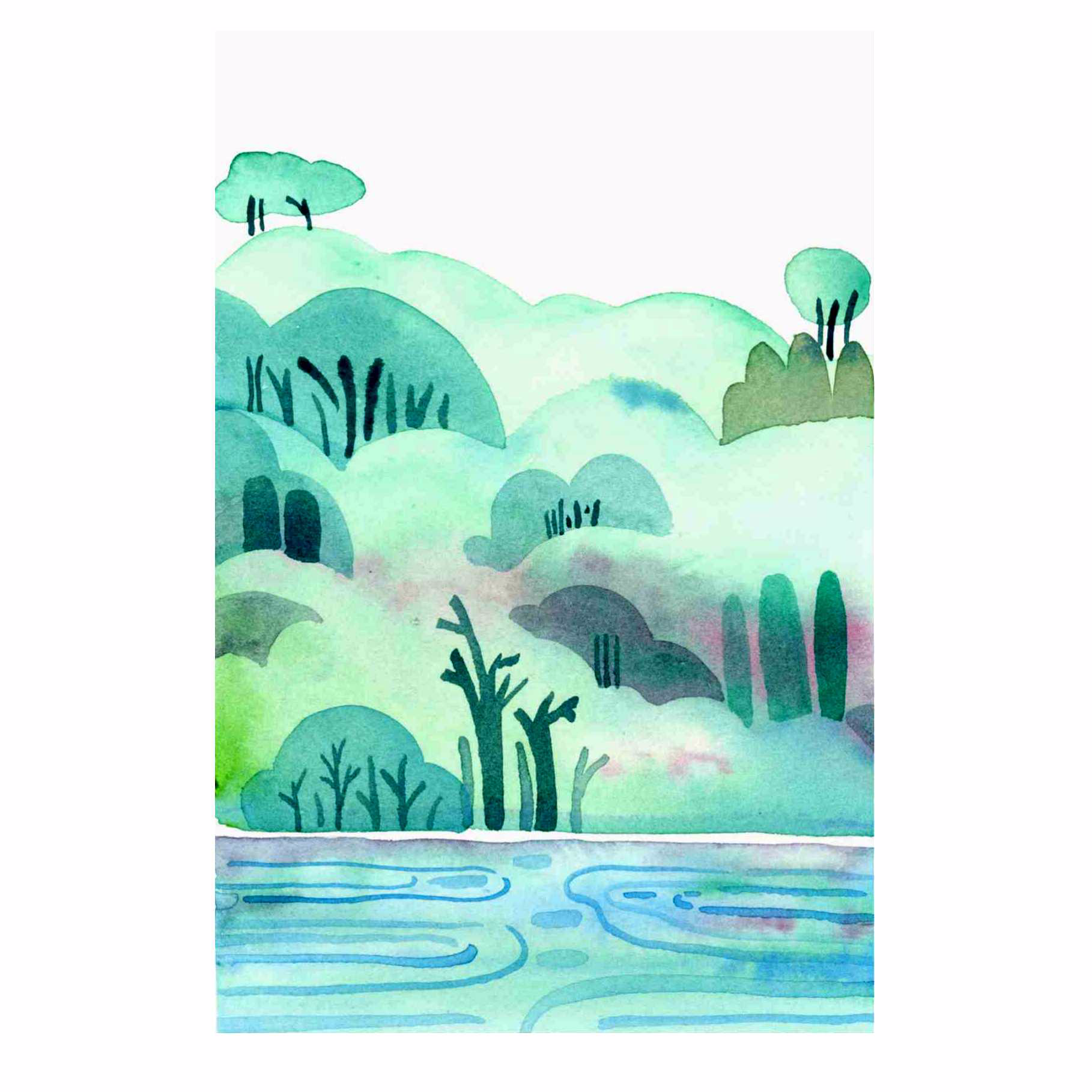 晕染学习《岸边的密林》水彩