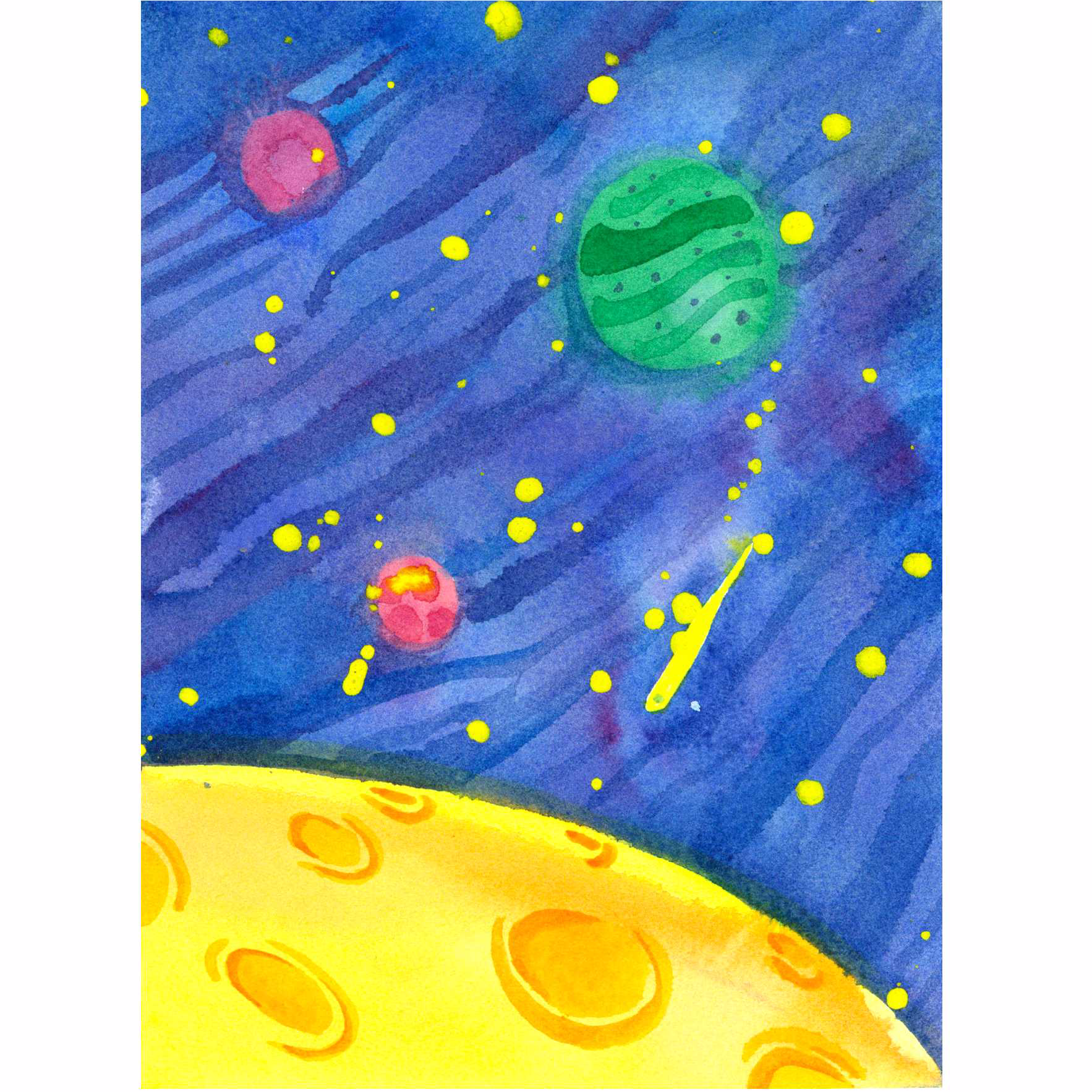 宇宙天体表现《一颗星球的自述》水彩