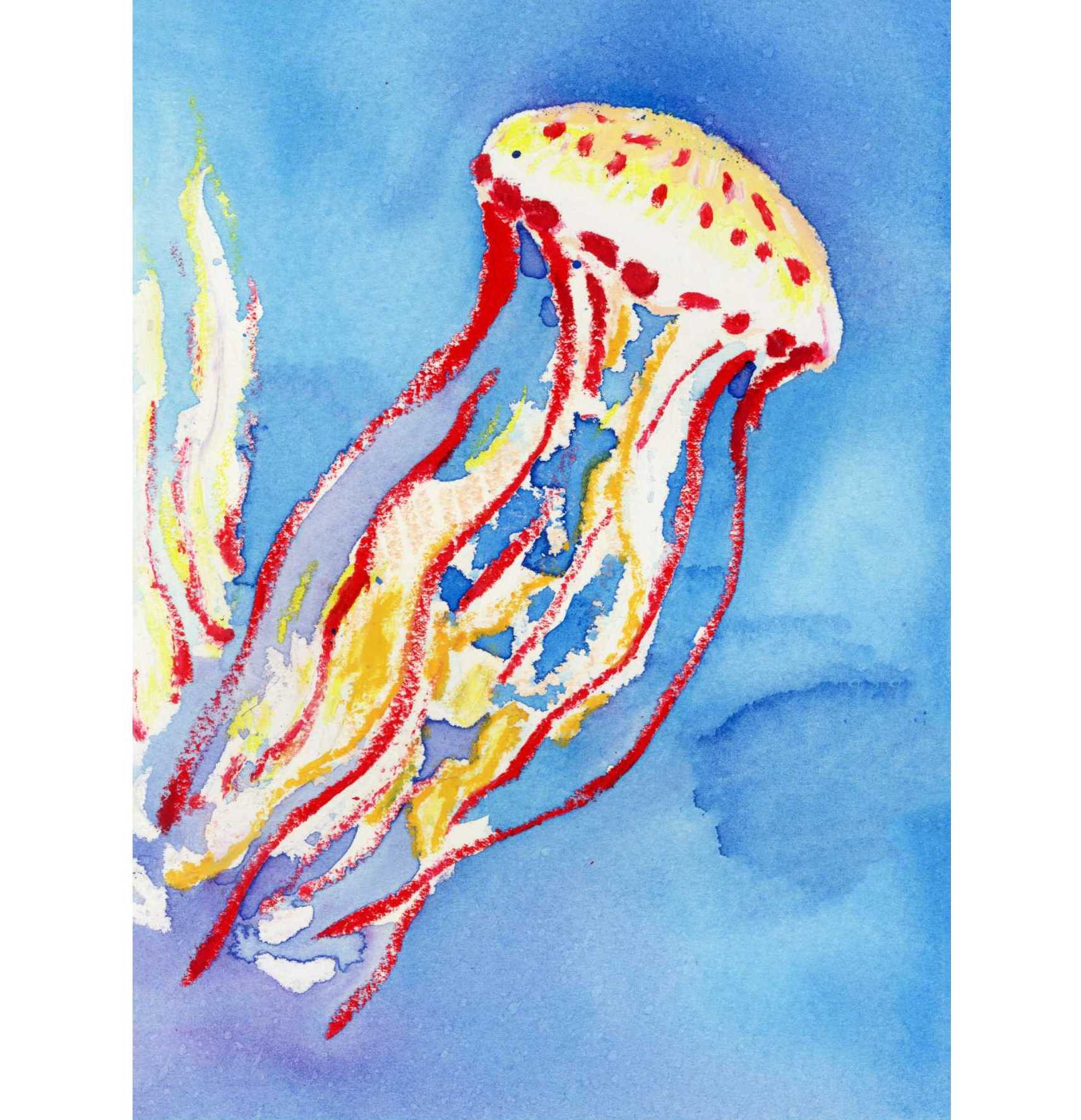 蜡笔与水彩结合绘画《游动的水母》水彩