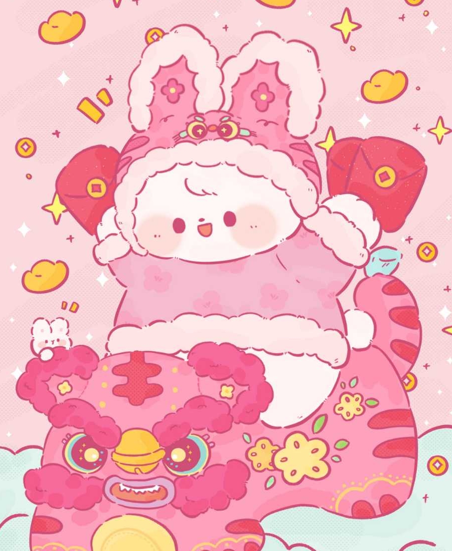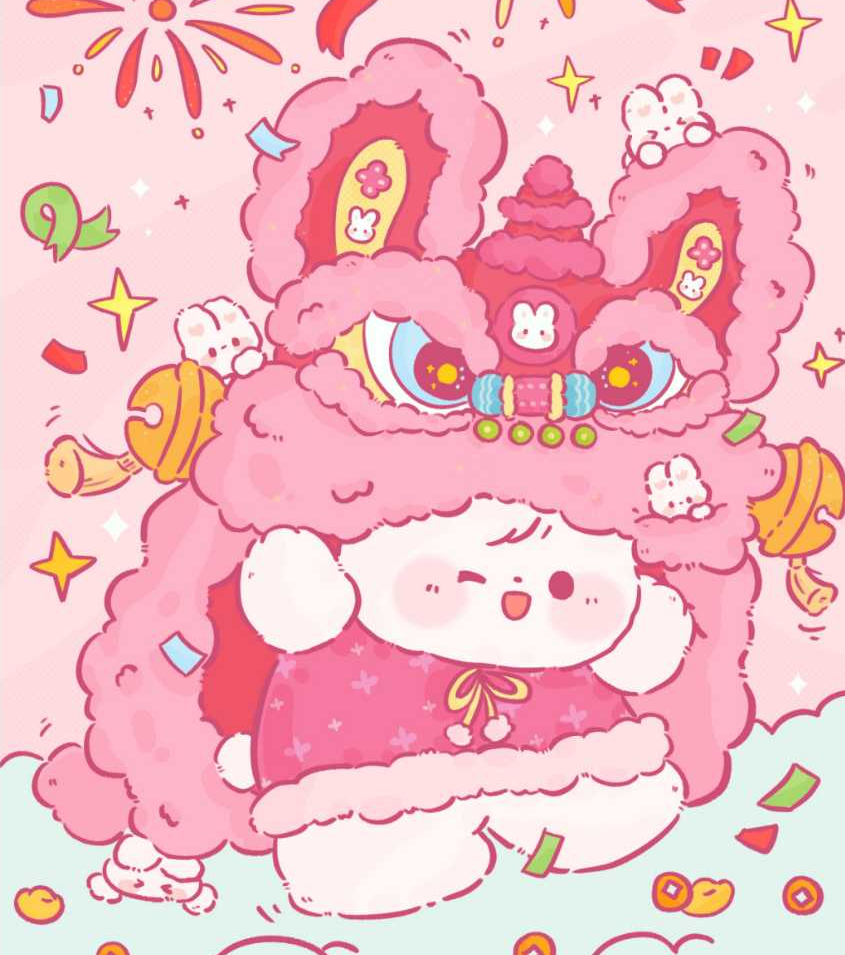 萌兔舞狮